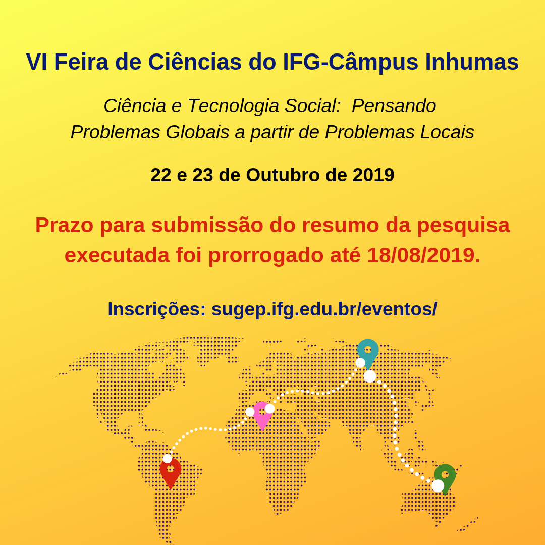 Com o tema "Ciência e Tecnologia Social - Pensando problemas globais a partir de problemas locais", o evento será realizado em outubro