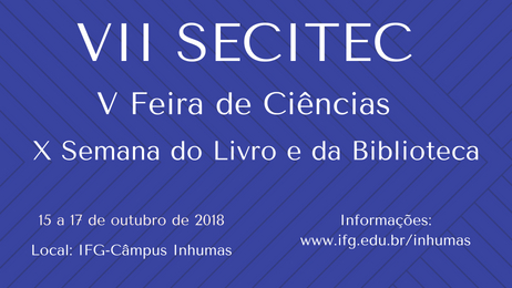 VII Secitec, V Feira de Ciências e X Semana do Livro serão realizadas de 15 a 17 de outubro