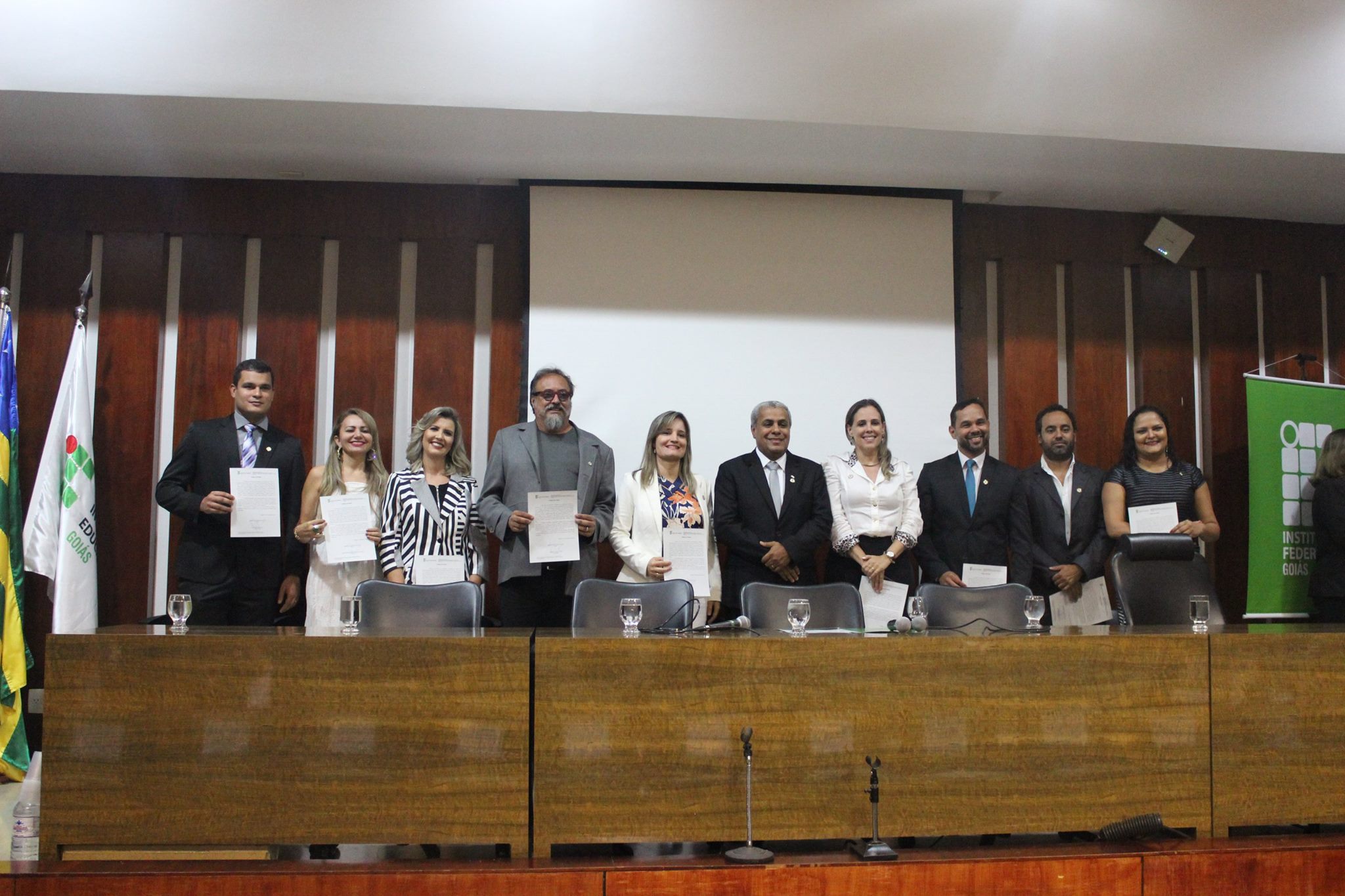 Em solenidade coletiva, presidida pelo reitor do IFG, diretores-gerais de nove câmpus da instituição foram empossados hoje de manhã