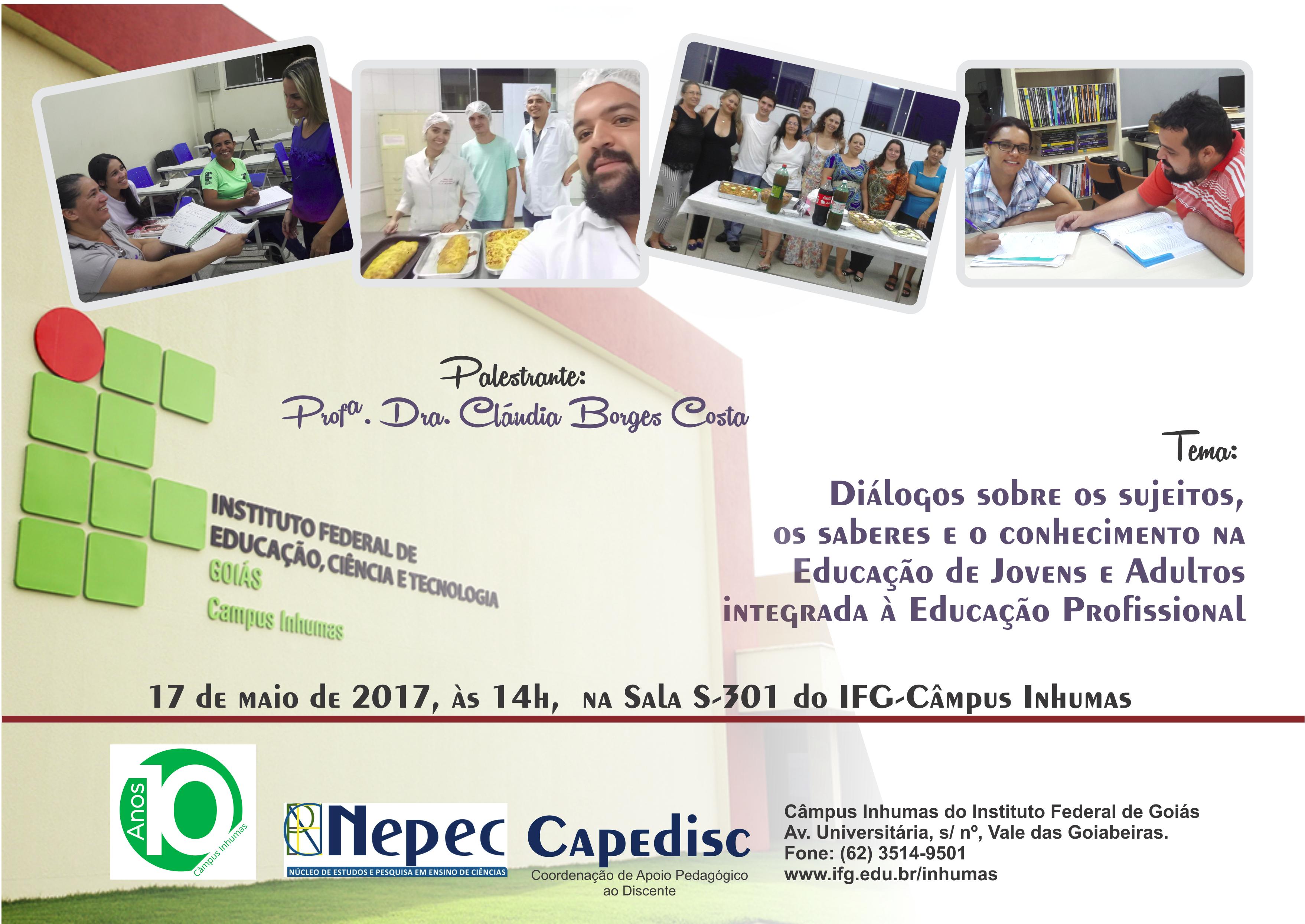 A atividade será ministrada pela professora Cláudia Borges Costa, doutora em Educação pela Universidade de Brasília (UnB) e membro do Fórum Goiano de Educação de Jovens e Adultos