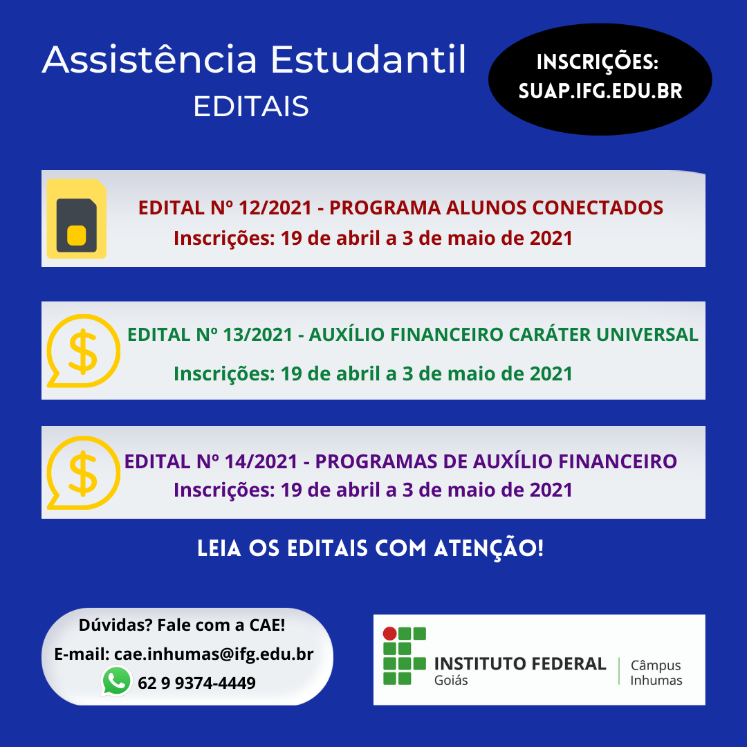 Inscrições abertas para Editais de Auxílio Financeiro e do Programa Alunos Conectados
