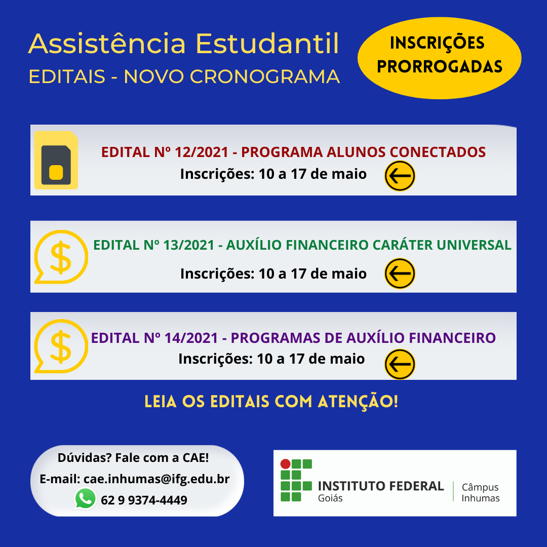 Editais de Auxílio Financeiro e do Programa Alunos Conectados têm inscrições prorrogadas