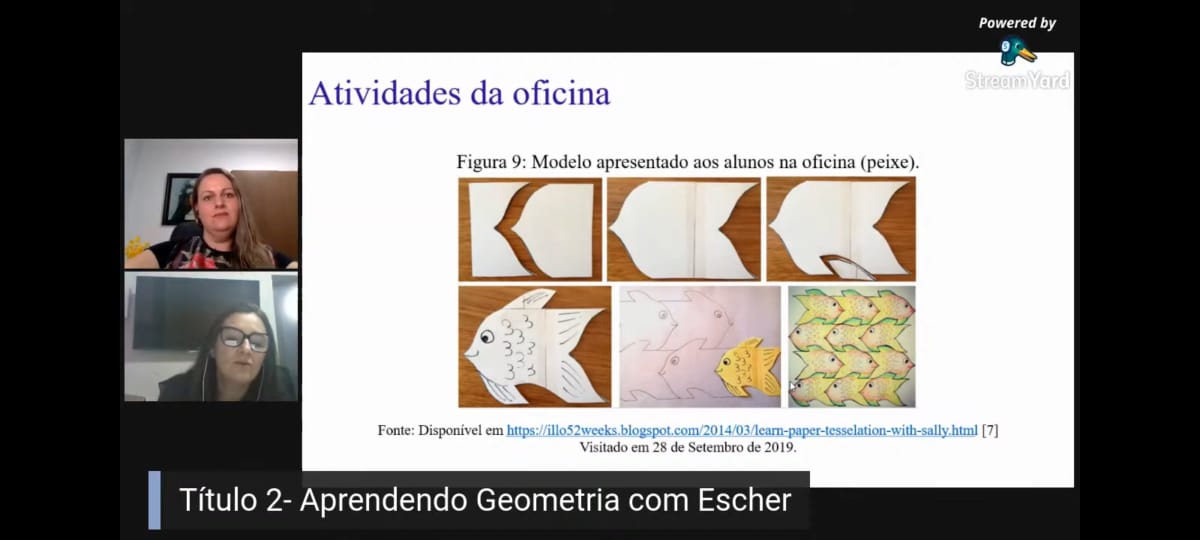 Duas professoras do IFG Câmpus Itumbiara estão participando do Workshop de Mulheres na Matemática, evento que é organizado pela Universidade Federal Rural de Pernambuco (UFRPE). As docentes Adriana Carvalho Rosa e Glauce Ribeiro de Souza Mendonça apresentaram sua comunicação científica “Aprendendo Geometria com Escher” ontem, 10/11, e a gravação da apresentação delas está disponível neste link: https://www.youtube.com/watch?v=x4gv36uZd8A (a partir de 22:51).