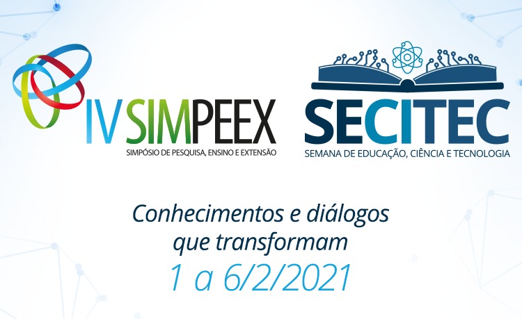 O Instituto Federal de Goiás (IFG) vai realizar seu IV Simpósio de Ensino, Pesquisa e Extensão (Simpeex) em conjunto com as Semanas de Educação Ciência e Tecnologia (Secitecs), realizadas de forma descentralizada nos câmpus. Os eventos serão realizados virtualmente de 1º a 6 de fevereiro. A programação do Simpeex será transmitida pelo canal IFG Comunidade no Youtube.