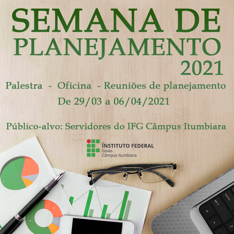 Começa na próxima segunda-feira, às 9h, a Semana de Planejamento 2021/1 do Câmpus Itumbiara. O link de acesso para as atividades será enviado por e-mail, para todos os servidores, juntamente com a convocação de participação.
