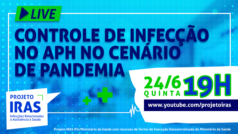 A próxima edição da live do Projeto IRAS (Infecções Relacionadas à Assistência à Saúde) vai tratar do controle de infecção no atendimento pré-hospitalar (APH) no cenário da pandemia da Covid-19. O bate-papo será realizado no dia 24 de junho, próxima quinta-feira, às 19 horas, no canal do Projeto IRAS do YouTube (https://www.youtube.com/projetoiras).
