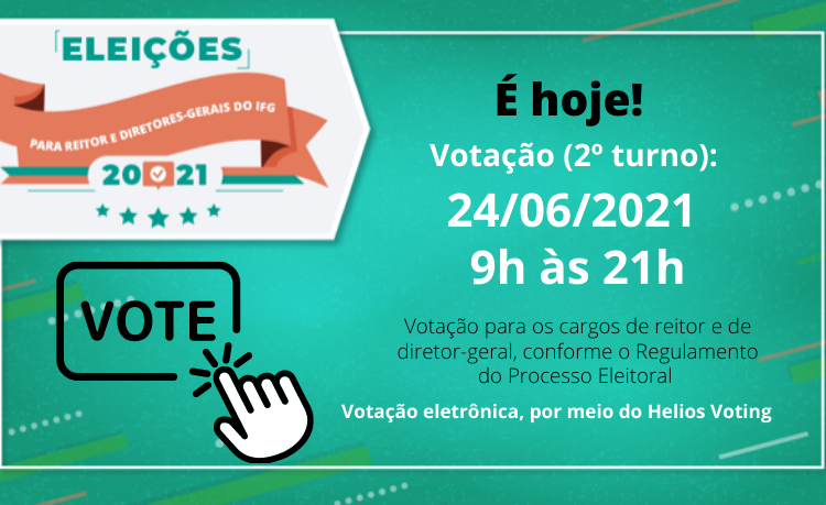 A apuração dos votos será realizada, sem interrupção, logo após o encerramento da votação, às 21 horas, e será transmitida on-line no canal oficial do IFG no YouTube: https://www.youtube.com/watch?v=HT_RlyasLl0