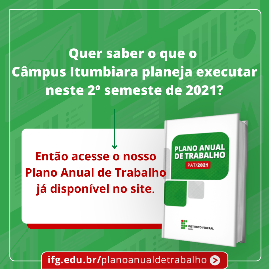 Conheça os demais PATs disponibilizados à comunidade acadêmica em: ifg.edu.br/planoanualdetrabalho