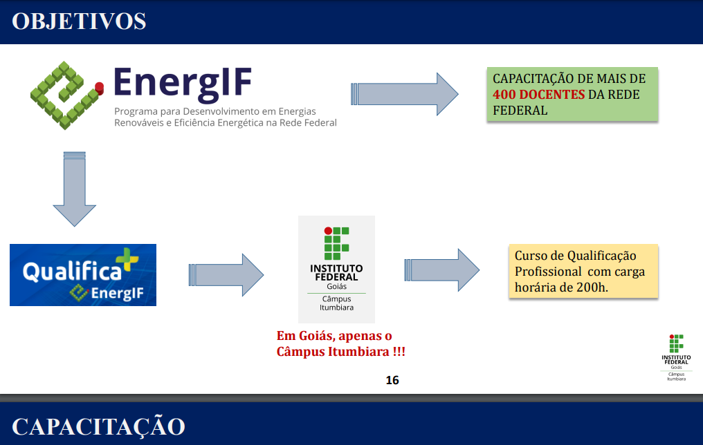 O Qualifica Mais Energif é uma linha de fomento para a oferta de vagas no curso de qualificação profissional de Eletricista de Sistemas de Energias Renováveis com carga-horária mínima de 200h. O Programa Energif é estruturado no âmbito da Secretaria de Educação Profissional e Tecnológica (SETEC), do Ministério da Educação (MEC), que foca em medidas de melhoria no desempenho energético da Rede Federal, bem como a ampliação da oferta de cursos por suas unidades. O Instituto Federal de Goiás (IFG) participa do Programa por meio do Câmpus Itumbiara.