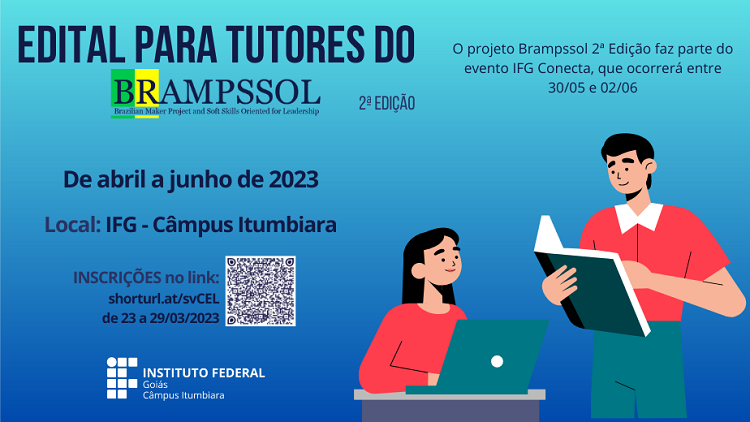 A Gerência de Pesquisa, Pós-Graduação e Extensão (Gepex) do IFG Câmpus Itumbiara lançou um edital com vagas para estudantes dos cursos superiores atuarem como Tutores da 2ª edição do projeto Brampssol. A atuação deles está prevista para ocorrer de abril a junho deste ano. E mais, quem for selecionado como Tutor também participará do evento “IFG Conecta” que está sendo organizado para ocorrer ainda no mês de maio.