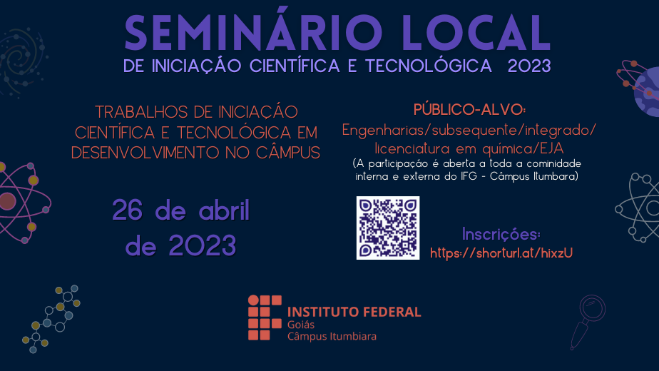 Você está aqui: Página inicial > Editais > Pesquisa e Inovação - Em andamento > IFG > Câmpus > Itumbiara > Notícias do Câmpus Itumbiara > Seminário Local de Iniciação Científica do Câmpus Itumbiara será dia 26