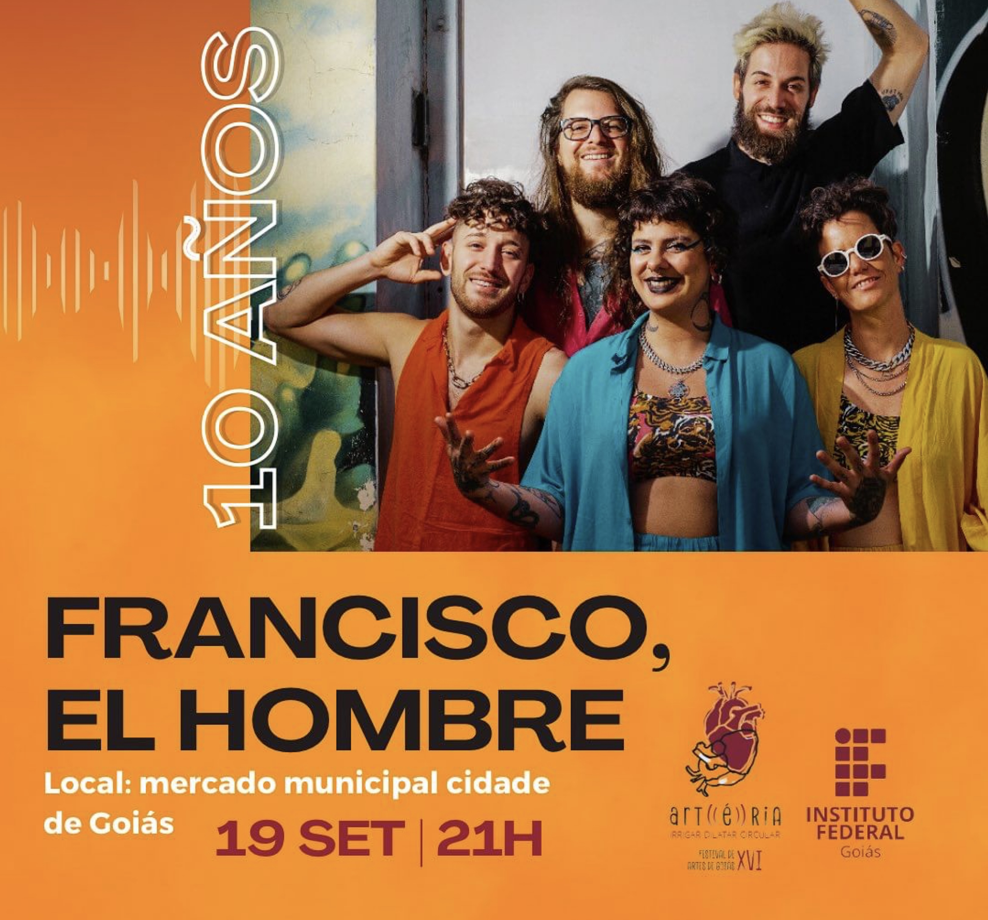 Uma das principais e primeiras atrações do Festival de Artes do IFG será a banda Francisco, el Hombre, que se apresenta no Mercado Municipal da Cidade de Goiás, às 21h da terça-feira, 19 de setembro, com entrada franca. Com 10 anos de estrada, o grupo ganhou reconhecimento internacional a partir de 2017, quando foi indicada ao Grammy Latino por melhor canção em língua portuguesa, pela canção “Triste, Louca ou Má”.