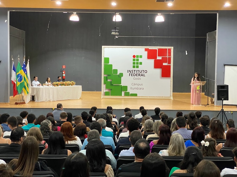 A mesa diretiva da cerimônia foi presidida pelo diretor-geral do IFG Câmpus Itumbiara, prof. Marcos Antônio Arantes de Freitas, pela coordenadora acadêmica, profa. Thaíssa de Cesar, que representou o chefe de departamento de áreas acadêmicas, prof. Leonardo Magalhães de Castro. E ainda pelo coord. da Eletrotécnica, Diogo Soares Resende e pelo coord. da Química, Moisés Rodrigues da Silva.