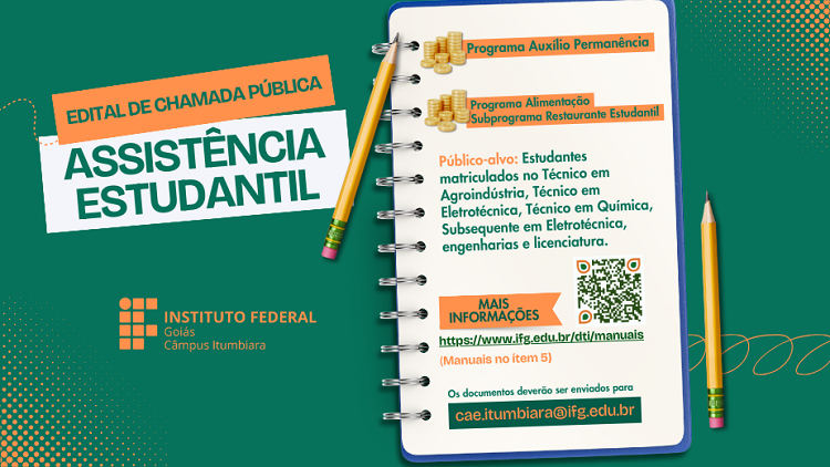 A Coordenação de Assistência Estudantil, do IFG Câmpus Itumbiara, publicou dois editais voltados aos alunos que estejam em situação de desigualdade socioeconômica: um é o Programa Auxílio Permanência e o outro o Programa Alimentação Subprograma Restaurante Estudantil.