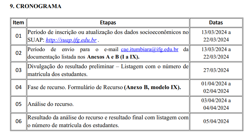 Importante, todos os documentos deverão ser enviados para o e-mail cae.itumbiara@ifg.edu.br . Clique aqui para acessar os editais.