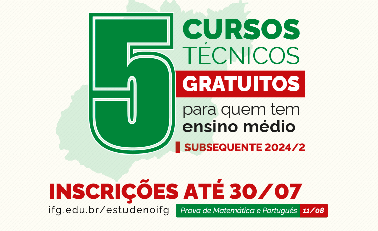 O Instituto Federal de Goiás abriu as inscrições para a seleção do curso Técnico Subsequente, e no Câmpus Itumbiara são oferecidas 30 vagas para Eletrotécnica, com início neste segundo semestre de 2024, e no período noturno. As inscrições são gratuitas e devem ser feitas na página Estude no IFG, na seção de seleções em andamento: http://www.ifg.edu.br/estude-no-ifg/selecoes-em-andamento/tecnico-subsequente .