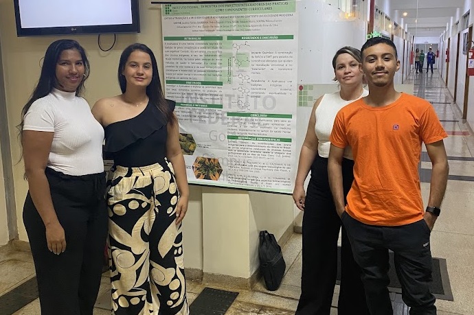Na quarta-feira da semana passada, dia 11, foi realizada a mostra dos Projeto Integradores com a participação de alunos e professores da Licenciatura em Química, do IFG Câmpus Itumbiara. De acordo com a coordenadora do curso, profa. Gláucia Aparecida, a proposta da atividade foi a de fazer com que os estudantes adquirissem “conhecimentos e habilidades por meio de um extenso processo de investigação estruturado em torno de questões complexas e autênticas e de produtos e tarefas cuidadosamente planejados.”