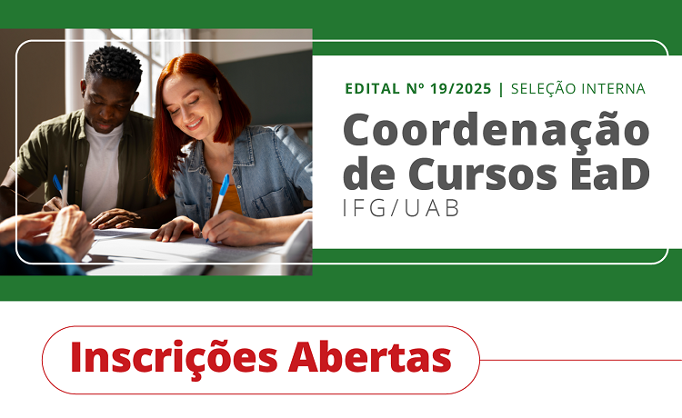O Instituto Federal de Goiás (IFG) abriu, na sexta-feira, 20, inscrições para o processo de seleção interna simplificada para as funções de coordenadores dos cursos de especialização em Educação Especial na Perspectiva Inclusiva, Tecnologias em Processos Químicos e MBA em Logística e Comércio Exterior com ênfase em Gestão Estratégica. Os cursos serão ofertados pelo IFG em parceria com a Universidade Aberta do Brasil (UAB) e a Capes, na modalidade a distância.