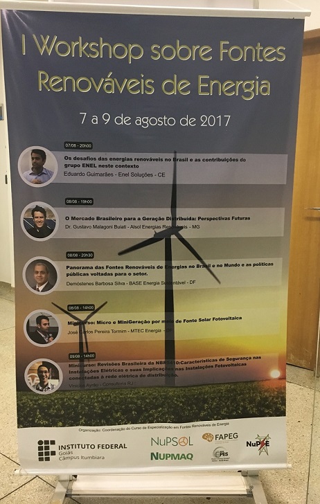 O Câmpus Itumbiara realizou esta semana o I Workshop Sobre Fontes Renováveis de Energia, evento que reuniu diversos especialistas para tratar do uso de diferentes matrizes energéticas no Brasil e no mundo e sobre a expansão do mercado de energia solar, particularmente no Brasil. Ainda foram temas de discussão as normas de segurança em instalações elétricas e modelos de micro e mini geração de energia.
