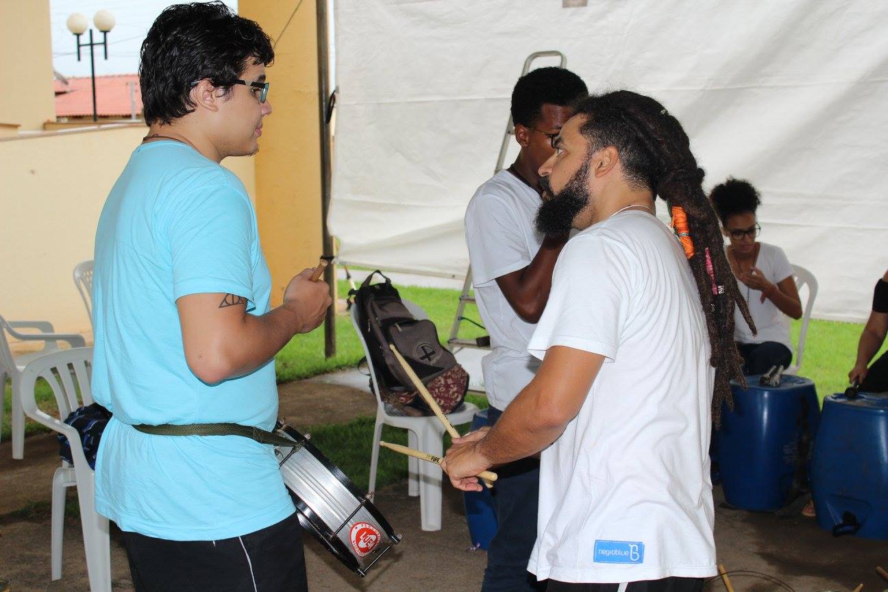 Este primeiro dia de Encontro de Culturas Negras veio acompanhado de muita chuva, mas também de muita empolgação de servidores, estudantes e do público externo que prestigiam o concorrido evento. Na tarde de ontem também foram realizados minicursos, roda de conversa e algumas oficinas. Entre estas últimas, estava a concorrida oficina de percussão brasileira com instrumentos alternativos.