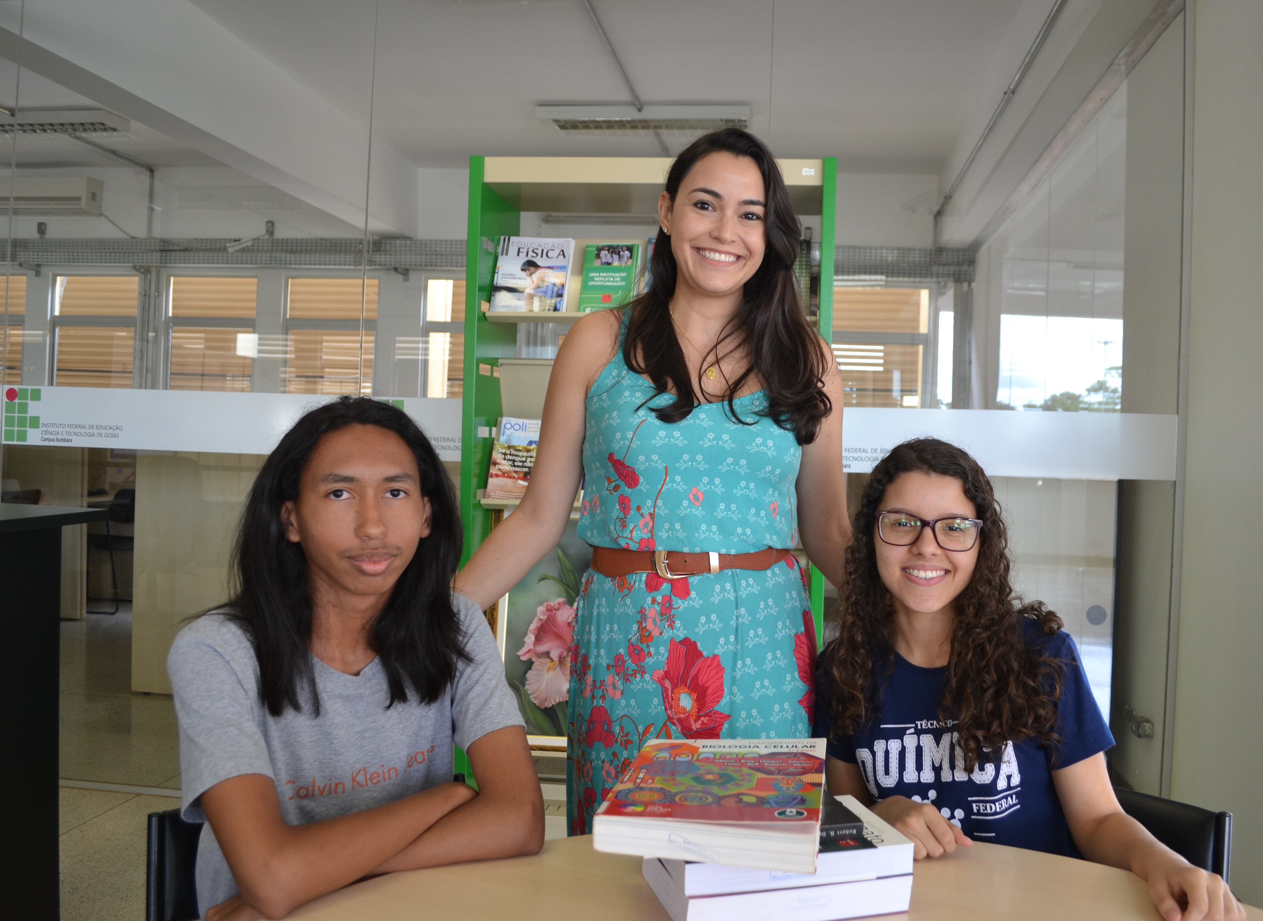 Lucas e Milene acompanhados pela docente Dayana Figueiredo