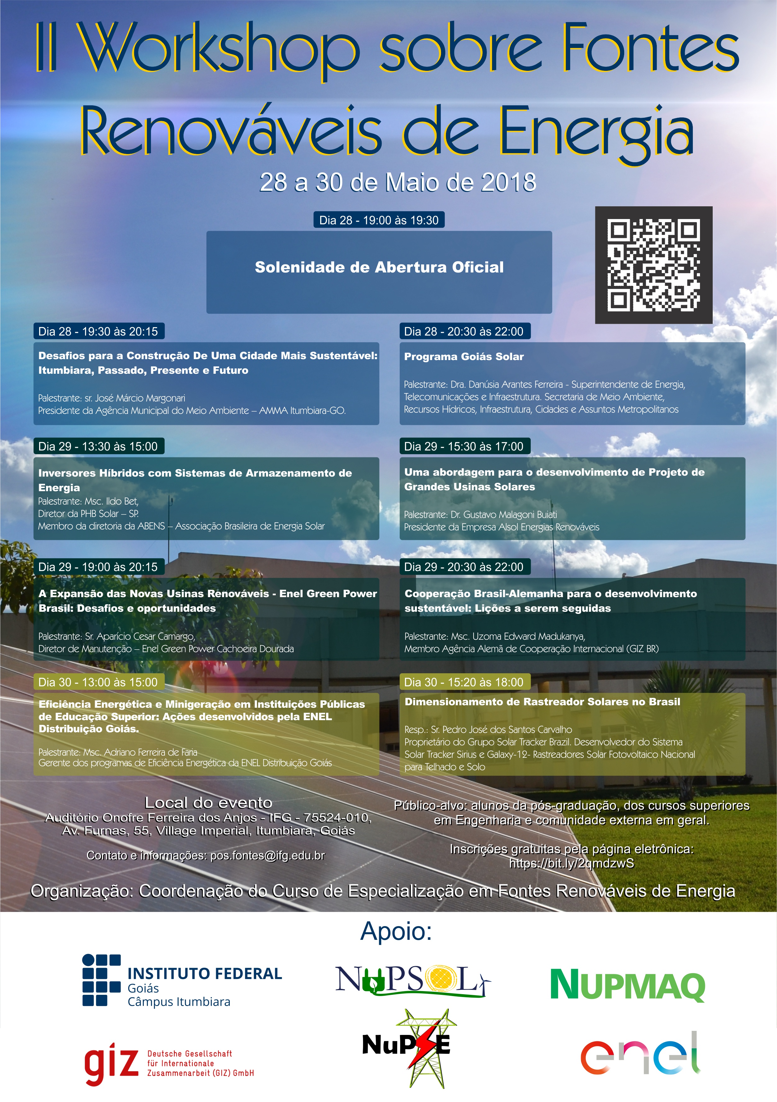 Visite o site do Workshop e faça sua inscrição. http://eventos.ifg.edu.br/fontes-renovaveis/