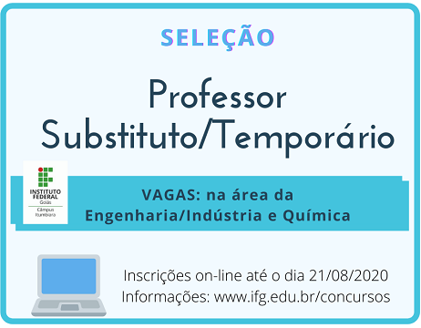 Câmpus Itumbiara abre vaga para Professor Substituto/Temporário na área de Engenharia e Química