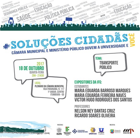 O IFG é uma das instituições participantes do projeto Soluções Cidadãs, uma iniciativa da Câmara e Ministério Público