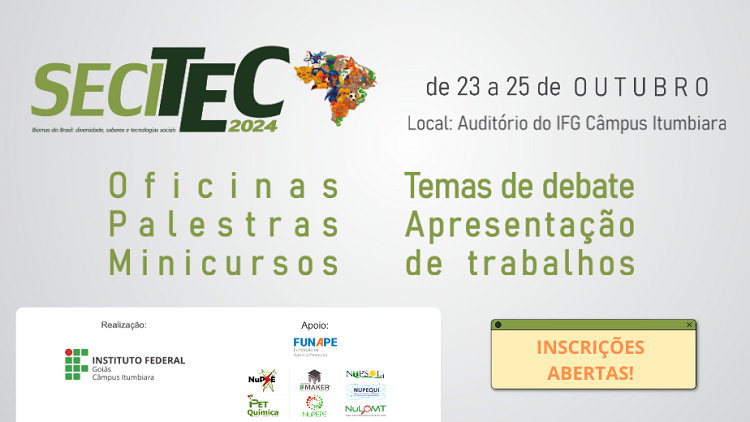 Estão abertas as inscrições para a Secitec 2024 do IFG Câmpus Itumbiara