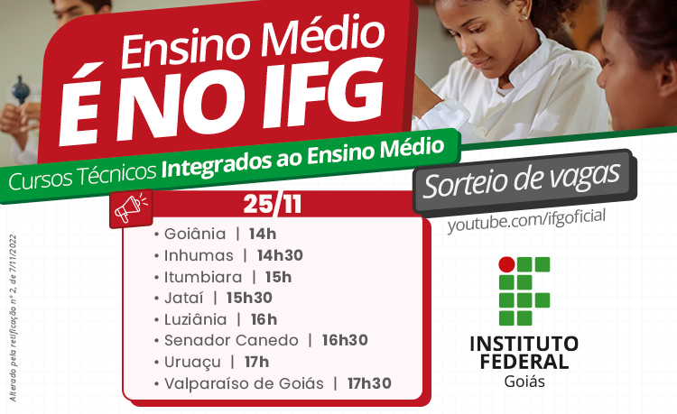Sorteio de vagas dos cursos técnicos integrados do Câmpus Itumbiara será na sexta, 25