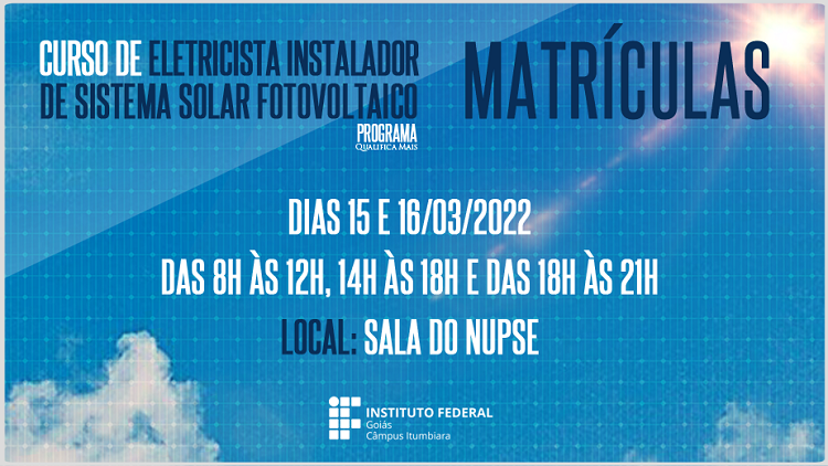Matrículas do curso de Eletricista Instalador de Sistema Fotovoltaico serão realizadas nesta terça e quarta-feira, 15 e 16 de março