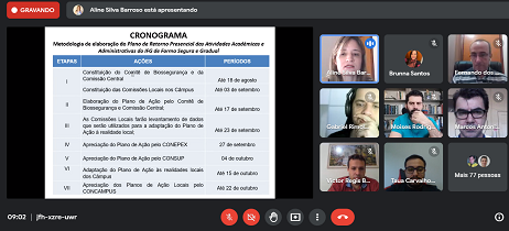 Print de tela do momento de apresentação de alguns novos docentes do IFG de Itumbiara Começou no dia 30 de agosto e segue até o dia 06 de setembro a Semana de Planejamento do 2º...