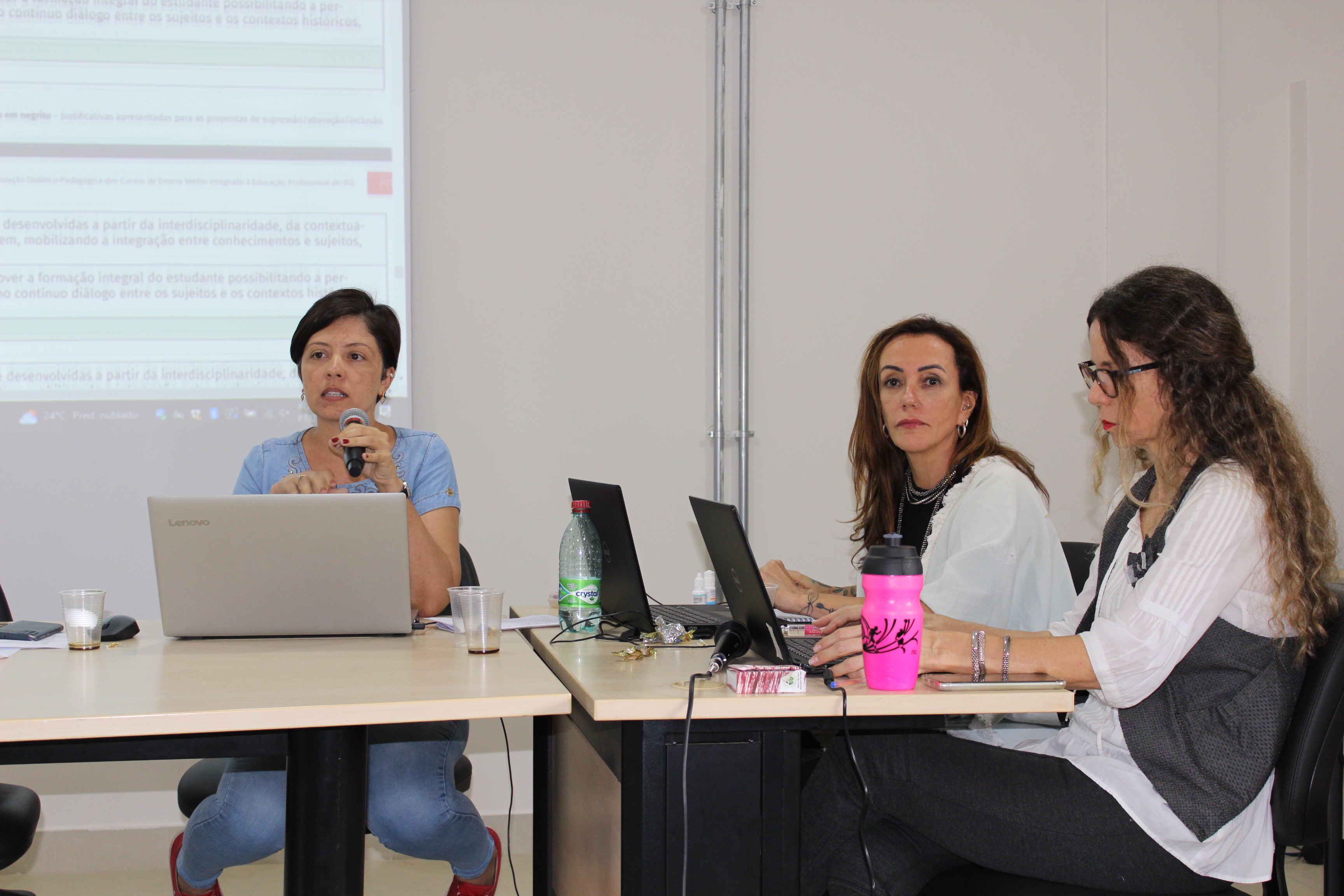Karla Cassiano (diretora de Políticas em Educação Básica e Superior), Maria Valeska (pró-reitora de Ensino) e Kênia Hidalgo (pedagoga) da Pró-Reitoria de Ensino do IFG participam da Plenária