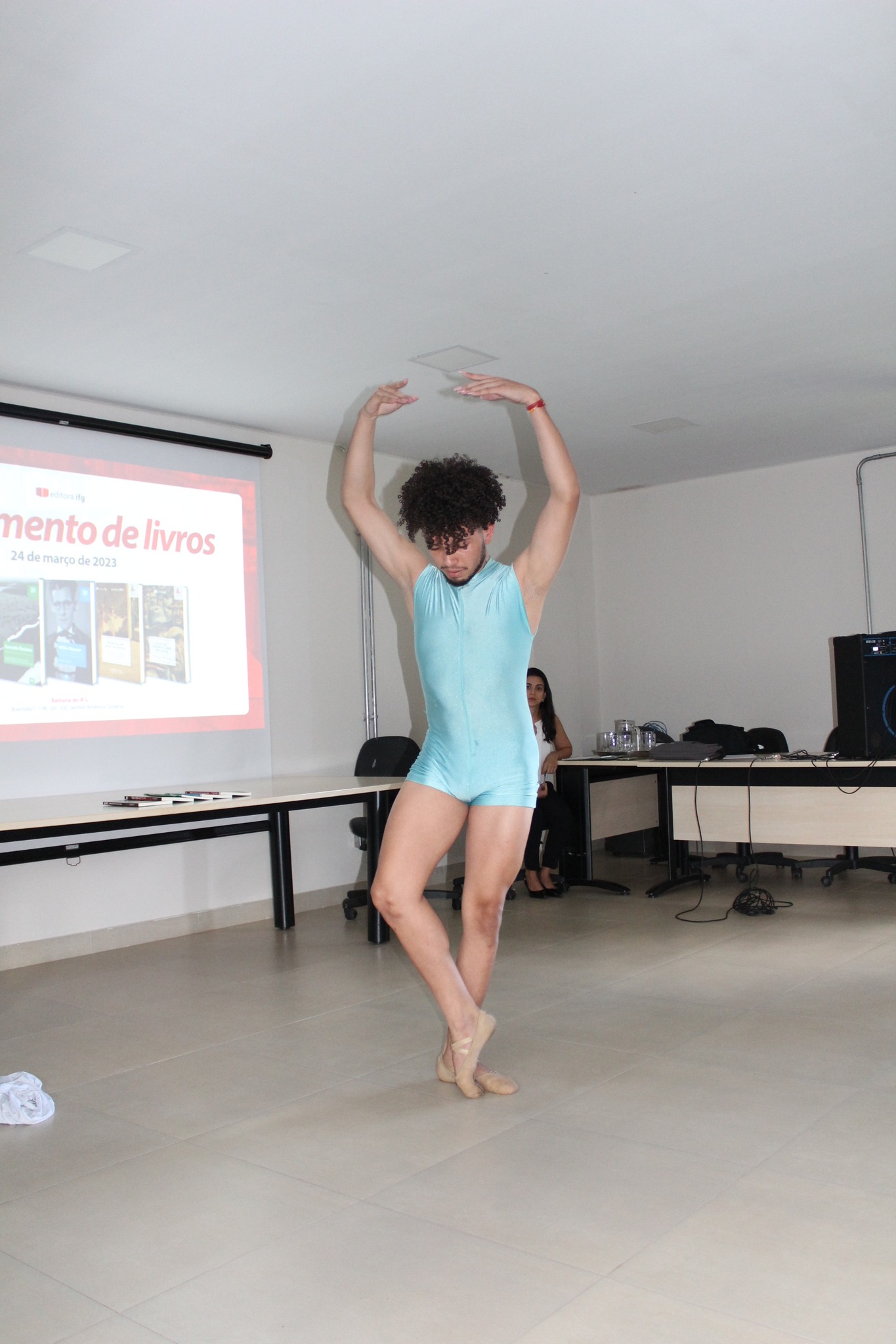 A tarde dedicada à cultura começou com uma apresentação do bailarino Isaías Cardoso, estudante do curso de Licenciatura em Dança, do Câmpus Aparecida de Goiânia. Isaías apresentou um trecho do “Balé Ralé”, no qual interage com o público contando sua história pessoal e de descoberta da dança, para depois dançar um pequeno trecho do balé “Gisele”. Isaías emocionou o público.