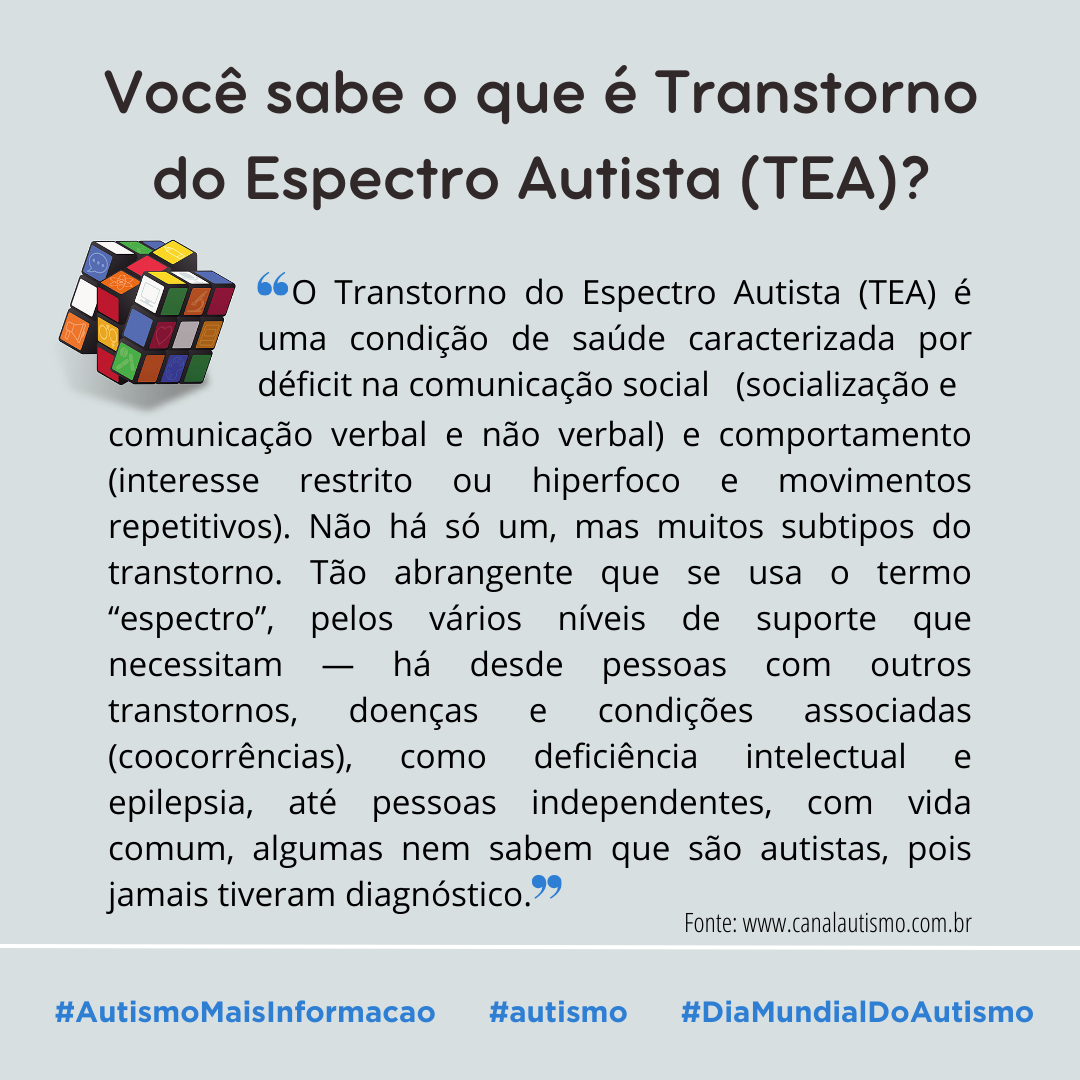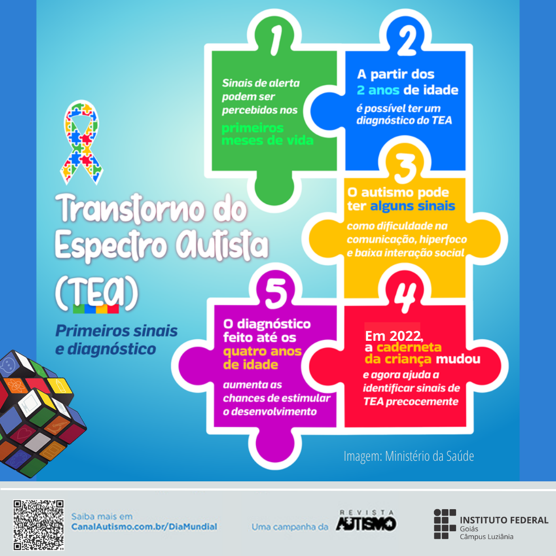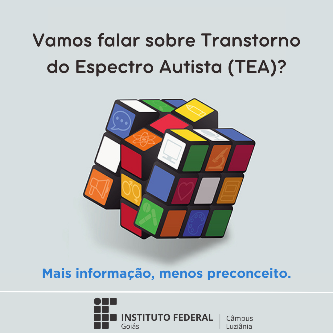 O Transtorno do Espectro Autista (TEA) é tema de campanha nas redes sociais do Instituto Federal de Goiás – Câmpus Luziânia. De 27 de março a 2 de abril, serão feitas publicações nas redes sociais a fim de refletir com a comunidade sobre o TEA e o Dia Mundial de Conscientização do Autismo, celebrado no dia 2 de abril.