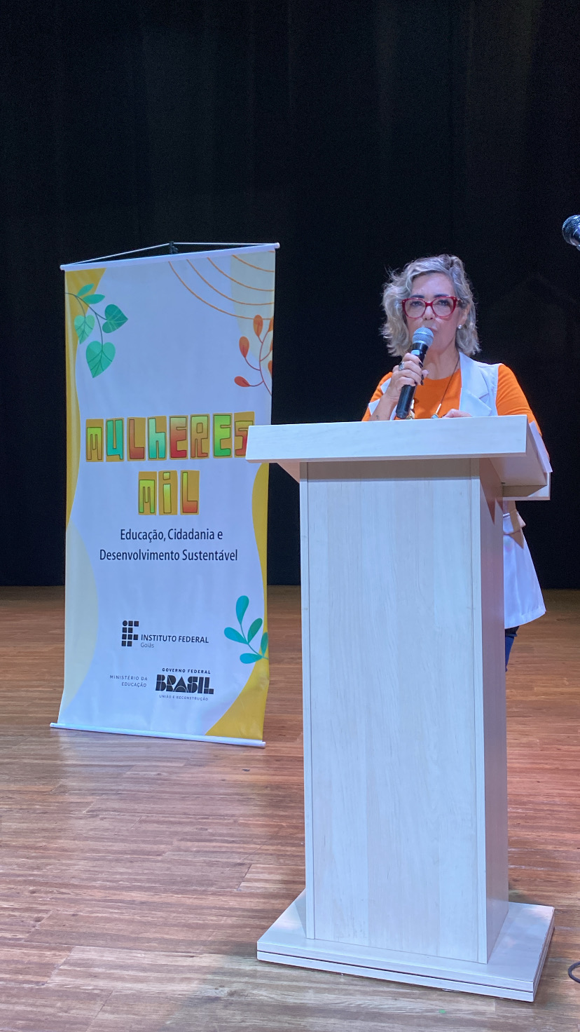 Em seu pronunciamento, a reitora do IFG, Oneida Irigon, comentou sobre a oportunidade de transformação e de empoderamento que o Programa Mulheres Mil pode gerar nas participantes. “Hoje é o primeiro passo para uma vida cheia de conquistas e realizações. Parabenizo a coragem e determinação de cada uma de vocês, que enfrentaram dificuldades para chegar até este momento. No IFG, estamos comprometidos em ofertar uma educação de qualidade, aliada à formação profissional na perspectiva de uma formação integral. E neste programa, vocês terão oportunidade de aprender novos conhecimentos, trocar experiências e fortalecer mais a autonomia de cada uma”, disse a professora Oneida Irigon.