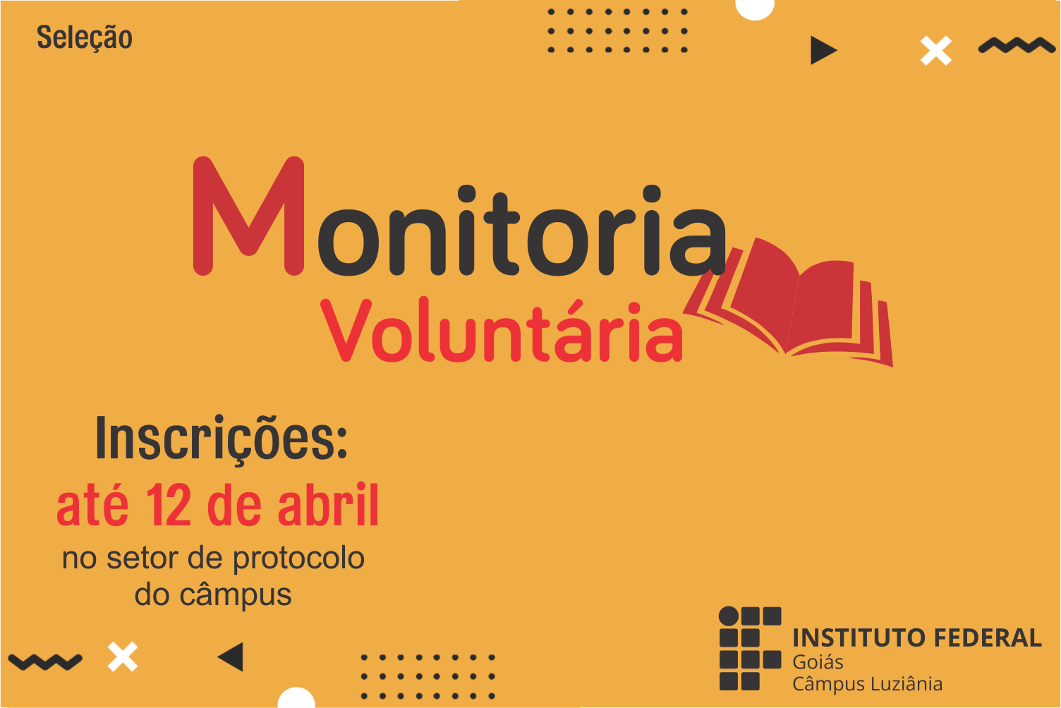 Inscrições da seleção de monitoria voluntária vão de 9 a 12 de abril