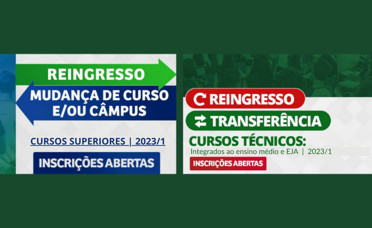 As seleções são para candidatos dos cursos superiores e técnicos integrados em tempo integral e EJA