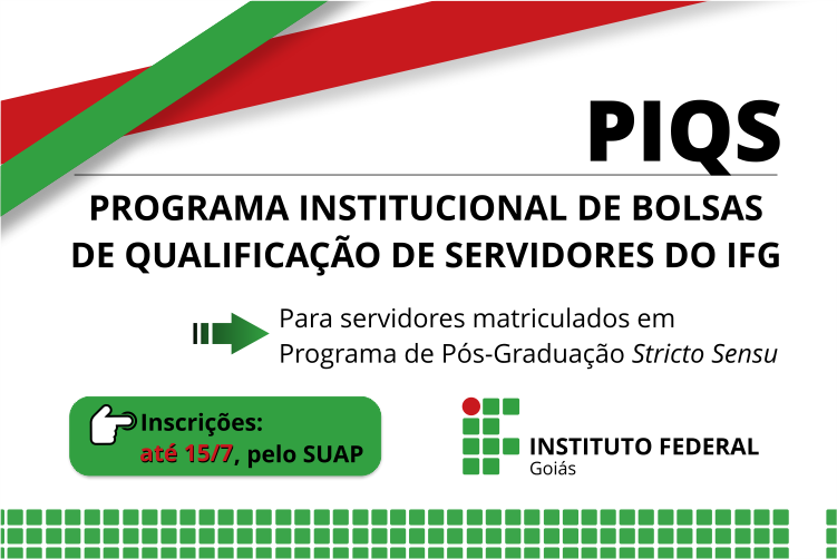 O PIQS/IFG concederá bolsa a servidor matriculado em curso ou programa de mestrado