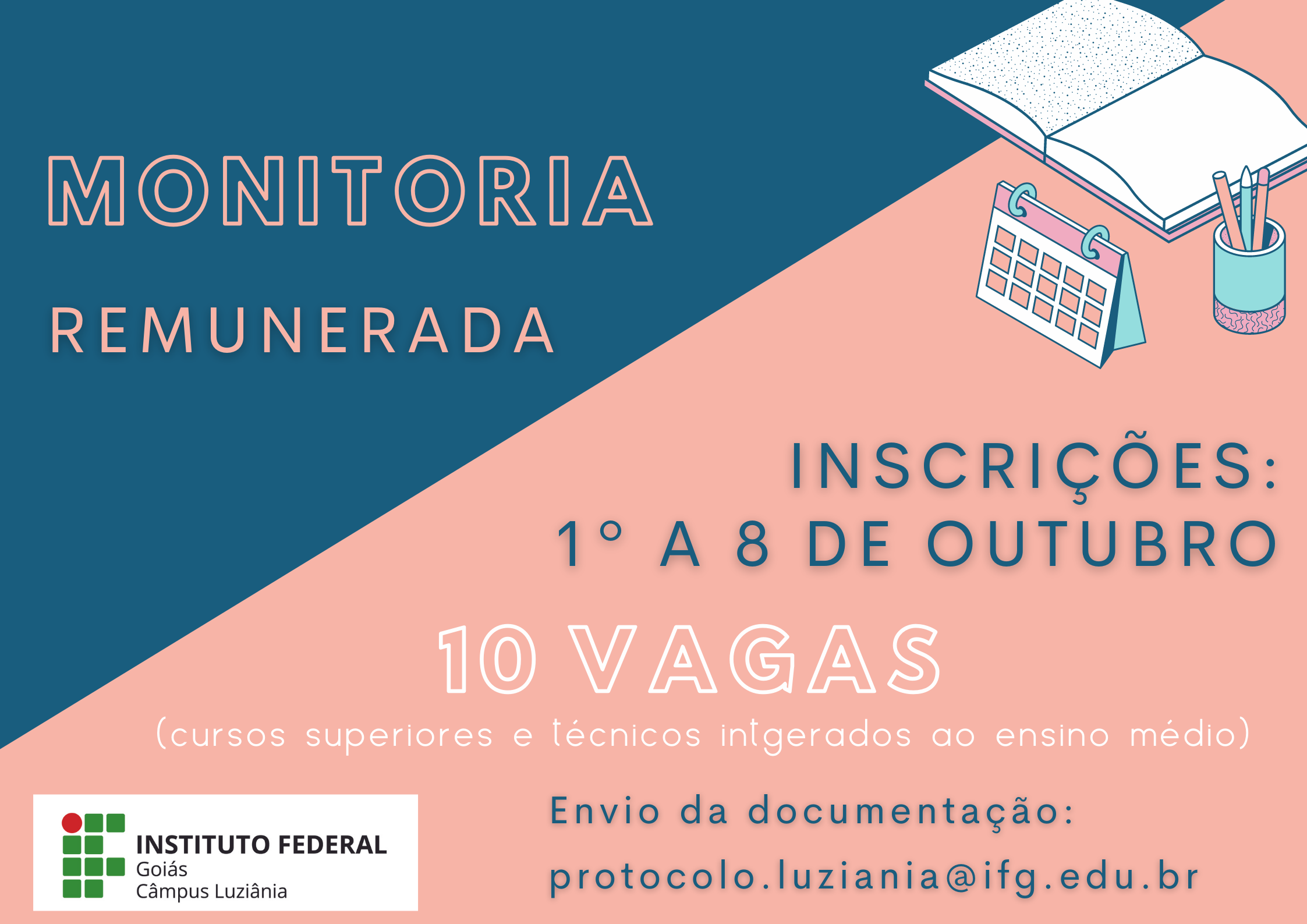 Inscrições para seleção de monitores seguem até sexta-feira, 8 de outubro
