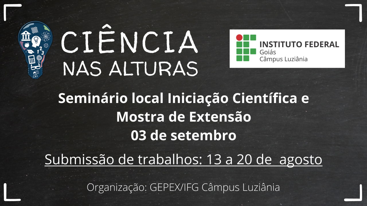O Câmpus Luziânia do Instituto Federal de Goiás (IFG) está com chamada pública aberta para submissão de trabalhos para o evento Ciência nas Alturas - Seminário Local de...
