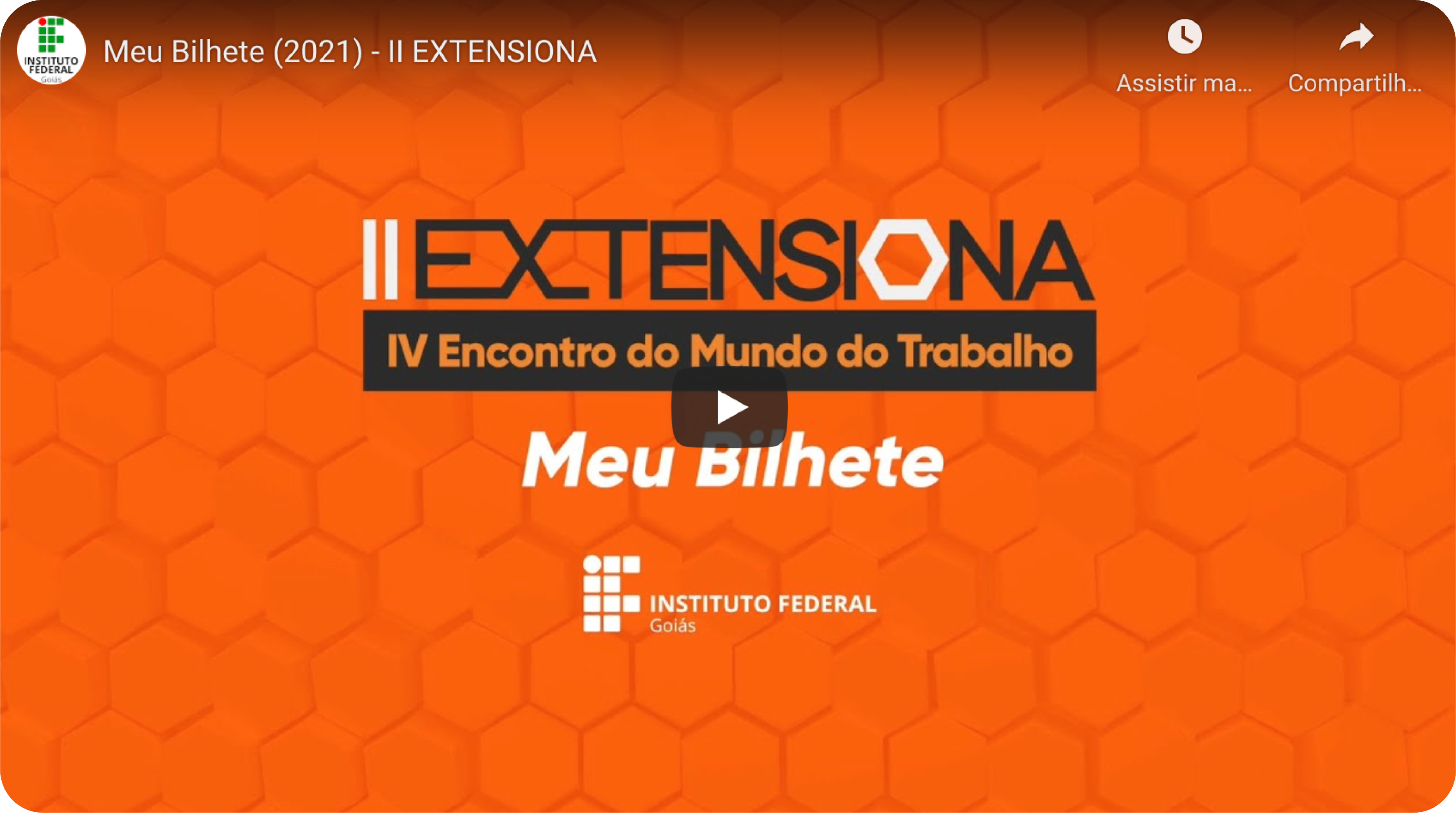 Abaixo você terá acesso ao vídeo Meu Bilhete (2021), apresentado no II EXTENSIONA.