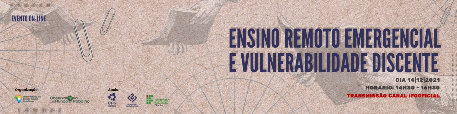 Ensino Remoto Emergencial e vulnerabilidade discente ou uma breve incursão sobre nossa cegueira - Artigo publicado na Revista UFG: https://jornal.ufg.br/n/149360-porque-o-estado-importa