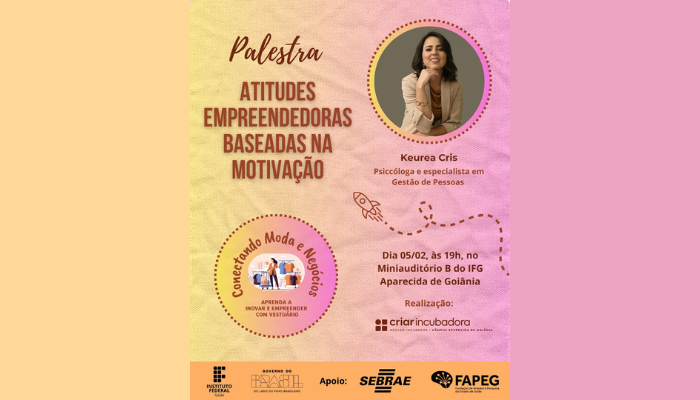 A palestra será ministrada pela psicóloga Kereua Cris nesta quinta-feira, 5 de fevereiro, no IFG – Câmpus Aparecida de Goiânia