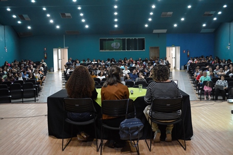 Os trabalhos da noite foram abertos pelas palavras da chefe de Departamento de Área Acadêmica, Karen Nascimento, ao declarar que “lugar de mulher é onde ela quiser”. As professoras da Língua Brasileira de Sinais (Libras), Edina Barros Nogueira e Eliane Barros Nogueira, convidadas palestrantes e surdas, abordaram o tema “Ser mulher, mãe, surda: compartilhando vivências”.