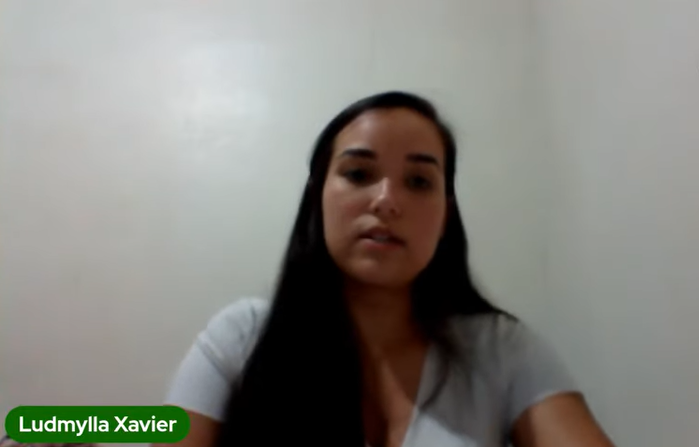 Os ex-estudantes Wellington Vaz, Thaís Badú e Ludmilla Xavier apresentaram suas experiências de vida adquiridas após a graduação. Ludmylla, aluna do IFG entre 2015 e 2020, relatou que, quando ainda estudava, foi contratada como professora intérprete em uma escola estadual de Formosa que oferta o segundo nível do ensino fundamental. “Foi uma experiência gratificante, mas cheia de desafios, dificuldades, com momentos em que pensei em desistir. Não é fácil trabalhar na área da docência. Você tem que ter muita paciência, garra e buscar meios de melhorar a sua atuação”, declarou.