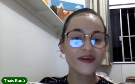 Thaís Badú começou sua caminhada como estudante de licenciatura em 2015. Ao entrar no curso, queria ser pesquisadora. Ela assumiu que tinha preconceito com a carreira docente e não queria seguir a docência. No IFG participou do Programa Institucional de Bolsas de Iniciação à Docência (Pibid), o que a levou a iniciar sua carreira no magistério em uma escola estadual, onde pôde aplicar a teoria da sala de aula. Ela percebeu na prática o excesso de carga horária extraclasse do docente e a baixa remuneração, mas, em contrapartida, diz que perdeu o medo e a vergonha de falar em público.