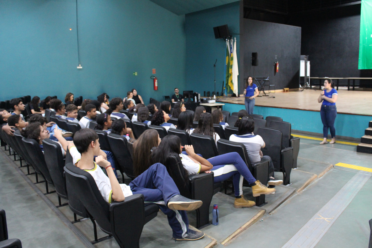Cerca de noventa alunas e alunos de escolas públicas formosenses da Rede Estadual de Educação - Centro de Ensino em Período Integral (CEPI) Izabel Christina de Sousa Ortiz, CEPI Helena Nasser e Escola Estadual Leônidas Ribeiro Magalhães - participaram, na última sexta-feira, 21 de outubro, do início oficial do projeto Cientistas Formosas, coordenado pelas professoras Adriana Martini Martins e Patrícia de Castilhos, do Câmpus Formosa. A abertura foi realizada no Teatro Guaiá com a participação das diretoras do Laboratório Germinax, Natália de Carvalho Tabet Gomes e Bárbara Naves Carvalho, que trataram da participação das mulheres nas atividades da área agrícola.