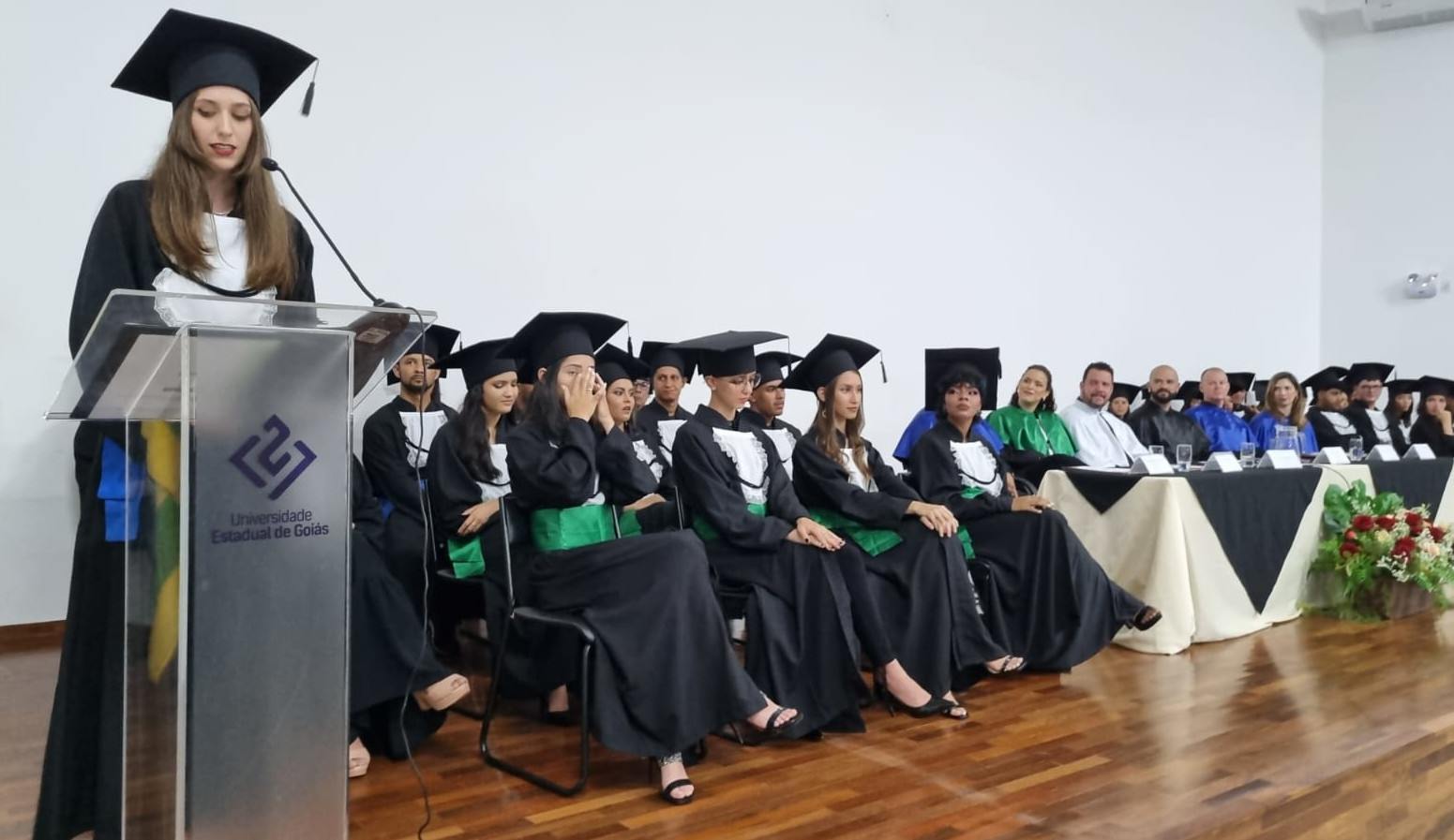 As formandas de Biotecnologia e Saneamento, Eduarda Machado de Andrade e Ana Paula Lessa e Souza, lembraram que suas turmas foram as primeiras a serem selecionadas por sorteio e as últimas a assistirem a aulas remotas no IFG. “A escola é um meio de socialização necessário ao jovem. Ficar longe da escola, longe da socialização, não foi bom para a gente, mas nós enfrentamos. Nós conseguimos. Fomos os bingos. Os bingos originais. Os primeiros com o sorteio e os últimos que tiveram aula remota aqui. Hoje se encerra uma Era”, enfatizou Ana Paula. Do mesmo modo, Eduarda reconheceu a importância da turma na construção da Instituição: “O IFG estará sempre marcado por nós, pois fomos responsáveis pelo início de uma nova fase e deixamos a responsabilidade de continuar essa jornada para nossos colegas que ficam”.