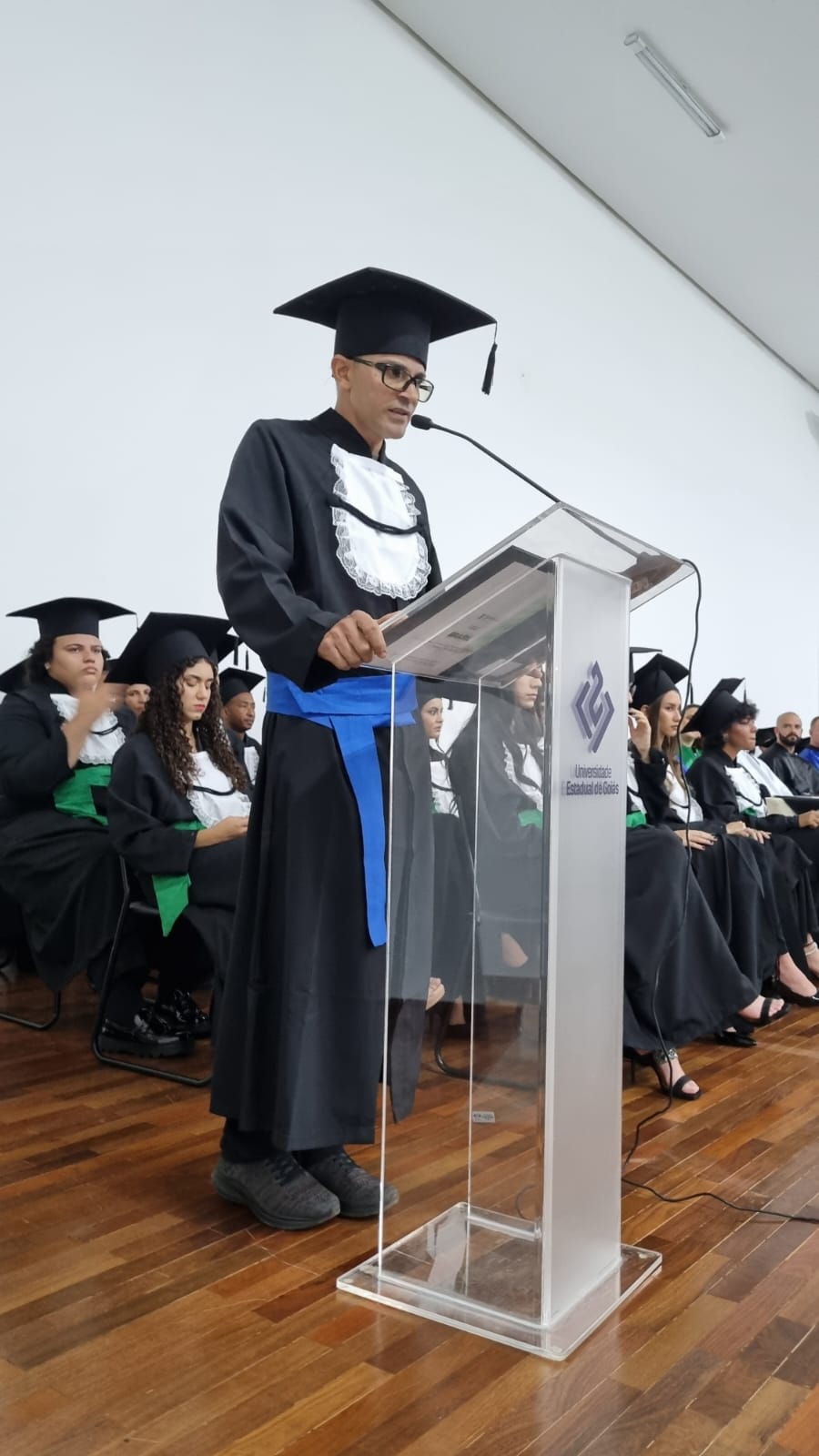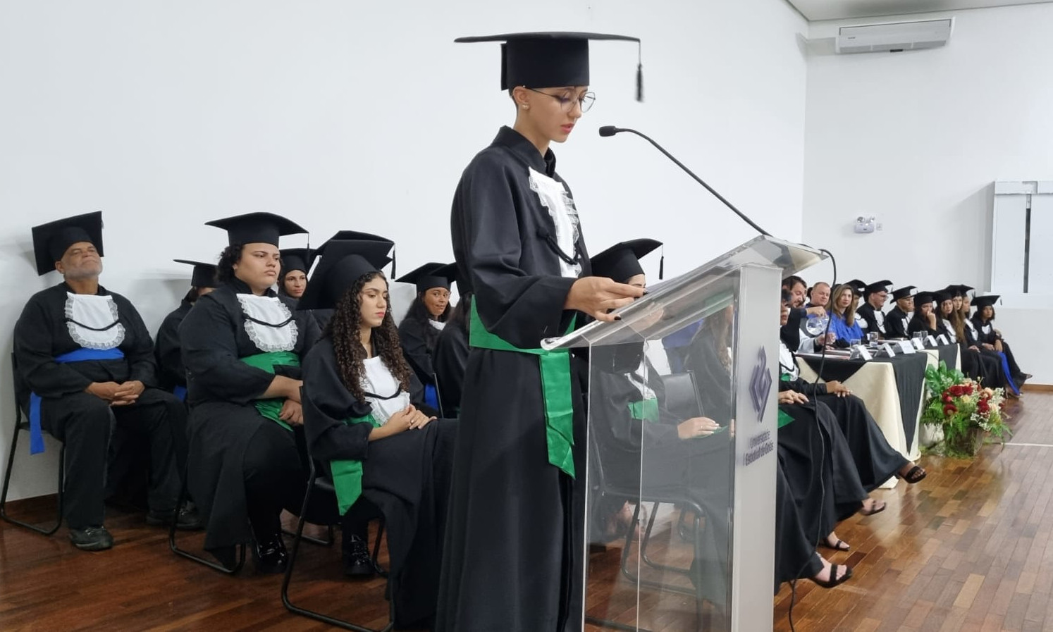 Salvador mencionou as aprendizagens adquiridas pelos estudantes da EJA. “Aprendemos a ser resilientes, a enfrentar obstáculos com determinação e a apoiar uns aos outros nos momentos difíceis. Essas lições nos moldaram e nos transformaram em pessoas mais fortes e maduras”, declarou. Por sua vez, a oradora do curso de Edificações – Educação de Jovens e Adultos, Josefa Luiza Pereira da Silva, resgatou conquistas alcançadas ao longo da trajetória no IFG e do papel transformador dos novos técnicos: “Que possamos aplicar todo o conhecimento adquirido aqui de maneira positiva e transformadora. Que possamos contribuir para a sociedade, para as nossas comunidades e para o mundo de forma significativa”.